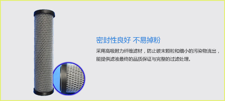 中柱外层是以精密的纤维滤材包覆内衬,在辅以活性炭纤维布环绕成形;液体流经滤材时,外层的深度纤维滤材