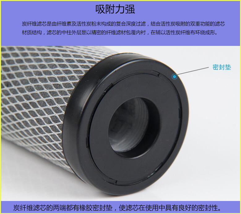 炭纤维滤芯是由纤维素及活性炭粉末构成的复合深度过滤,结合活性炭吸附的双重功能的滤芯材质结构,滤芯的